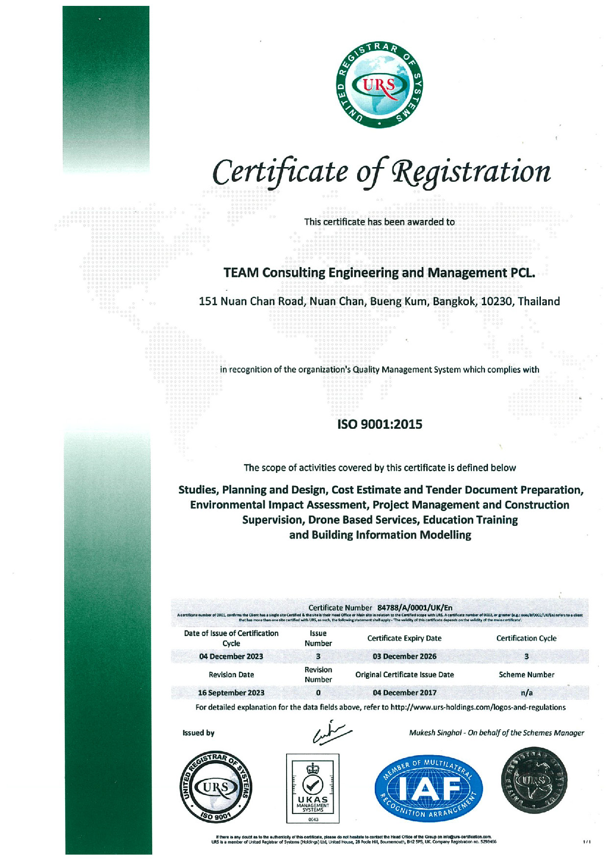 ทีมกรุ๊ป ดำเนินการด้วยระบบการบริหารจัดการที่มีประสิทธิภาพได้มาตรฐานสากล มุ่งเน้นการพัฒนาคุณภาพบริการ อย่างต่อเนื่อง เพื่อความพึงพอใจสูงสุดของลูกค้า และยืนหยัดเป็นผู้นำในธุรกิจที่ปรึกษา และธุรกิจเกี่ยวเนื่อง มาตรฐาน ISO 9001: 2015 เป็นสิ่งยืนยันได้อย่างดีถึงความมุ่งมั่นและความสามารถ ของเราในการ ตอบสนองความต้องการของ ลูกค้า โดยสอดคล้องกับข้อบัญญัติทางกฎหมาย