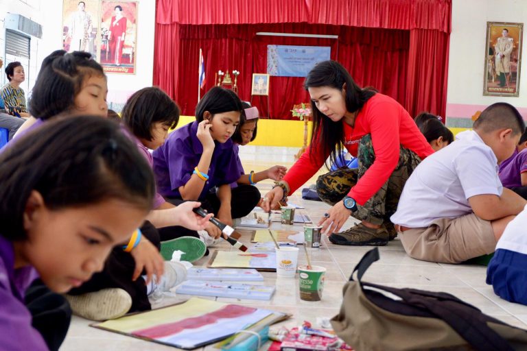 คุณพีรวัธน์ เปรมชื่น กรรมการบริหาร ทีมกรุ๊ป และกรรมการ มูลนิธิกลุ่มทีมใจ และกลุ่มพู่กันสัญจร นำโดย อ.พรชัย เลิศธรรมศิริ จัดกิจกรรมสอนวาดภาพระบายสี ให้กับนักเรียน ป.4-6 ตัวแทนจากโรงเรียนวัดท่าด่าน โรงเรียนวัดท่าชัย โรงเรียนวัดวังยายฉิม และโรงเรียนวัดหุบเมย 4 โรงเรียน ในเขตพื้นที่จังหวัดนครนายก ที่ทีมกรุ๊ปให้การอุปถัมภ์ จำนวน 35 คน ได้แสดงออกถึงความรู้สึกนึกคิดจินตนาการและความคิดสร้างสรรค์ภาพสวย และสร้างทักษะให้แก่เยาวชนในการเข้าร่วมการประกวดวาดภาพต่อไป