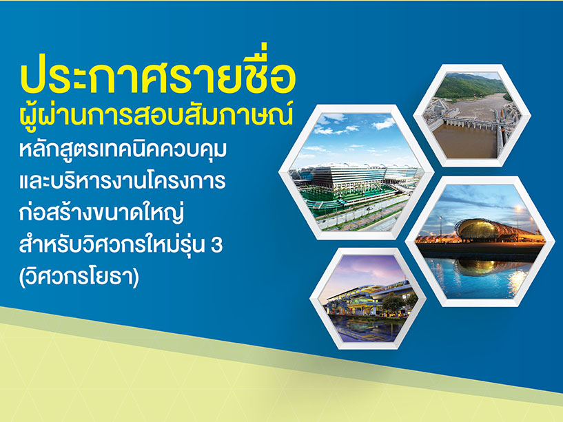สืบเนื่องจากหลักสูตรเทคนิคควบคุมและบริหารงานก่อสร้างสำหรับวิศวกรใหม่รุ่น 3 (วิศวกรโยธา) ที่ทีมกรุ๊ปได้เปิดรับสมัครนักศึกษาภาควิชาวิศวกรรมโยธาที่กำลังจะสำเร็จการศึกษาในปีการศึกษา 2560 และรวมถึงผู้ที่สำเร็จการศึกษามาแล้วไม่เกิน 1 ปีเพื่อมาเข้าร่วมหลักสูตรดังกล่าวทั้งนี้บริษัทฯขอประกาศรายชื่อผู้ผ่านการสอบสัมภาษณ์เพื่อเข้าร่วมหลักสูตร (ดังเอกสารแนบประกาศรายชื่อผู้ผ่านการสอบสัมภาษณ์)