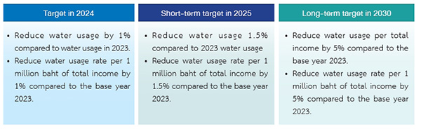 The Company’s Corporate Governance and Sustainability Team, consisting of many business units, focus on supporting all units to manage water resources effectively. The Team indicates the guidelines for reducing water usage, reducing water loss, recycling water used in the organization, installing the water saving devices, providing the management of all wastewater treatment systems resulting from activities within the TEAM building, allowing the relevant agencies to inspect the water leaks and reduce the water loss, as well as organizing the campaign for employees to use water resources wisely and creating awareness of water conservation.