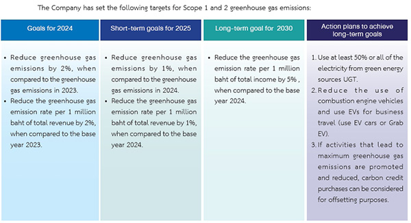 The Company has established guidelines to reduce greenhouse gas emissions by focusing on reducing electricity consumption as outlined in the “Energy Management” section, as well as reducing the use of resources and consumables such as paper, plastic bottles, and bags. Materials are reused, and a Paperless policy has been adopted in various work processes, including the use of digital documents in board meetings and the reduction of internal circulation documents, such as accounting and finance documents, and procurement documents.