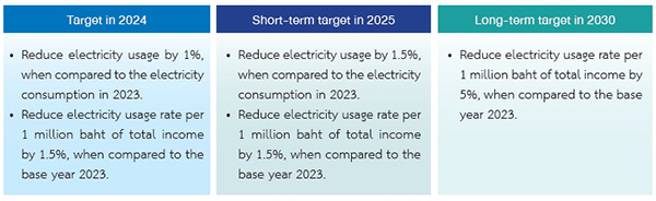 The company indicates the energy management guideline for both the internal operation and project operation to respond the targeted policy and goals and support the maximum effective energy use and energy reduction.