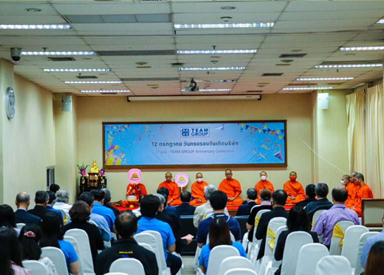 ดร.ประเสริฐ ภัทรมัย ผู้ก่อตั้ง ประธานกรรมการกิติมศักดิ์และกรรมการอาวุโส คุณศานิต ร่างน้อย ประธานกรรมการ คุณชวลิต จันทรรัตน์ ประธานกรรมการบริหาร และ ดร.อภิชาติ สระมูล ประธานเจ้าหน้าที่บริหาร ทีมกรุ๊ป พร้อมด้วยผู้บริหารและพนักงานร่วมฉลองในโอกาสครบรอบ 42 ปี โดยจัดกิจกรรมทำบุญใส่บาตรข้าวสารอาหารแห้ง พระภิกษุสงฆ์จำนวน 9 รูป ในช่วงเช้า และรับฟังบรรยายธรรม ในหัวข้อ “ธรรม ฟอร์ ทีม” โดย พระมหานภันต์ สนฺติภทฺโท ผู้ช่วยเจ้าอาวาส วัดสระเกศราชวรมหาวิหาร พร้อมทั้งถวายภัตตาหารแด่พระสงฆ์เพื่อความเป็นสิริมงคล และมอบทุนการศึกษา แก่บุตรพนักงานทีมกรุ๊ป จำนวน 35 คน เพื่อเป็นการส่งเสริมการศึกษาให้กับเยาวชน ซึ่งเป็นอนาคตของชาติ และการสร้างขวัญกำลังใจให้กับพนักงาน นอกจากนี้มูลนิธิกลุ่มทีมรวมใจ และพนักงานทีมกรุ๊ป ได้มอบเงินบริจาคและเครื่องอุปโภคบริโภค ภายใต้โครงการปันน้ำใจให้แก่น้องๆ โรงเรียนบ้านเด็กรามอินทรา (บ้านเด็กตาบอดผู้พิการซ้ำซ้อน) มูลนิธิธรรมิกชนเพื่อคนตาบอดแห่งประเทศไทย ในพระบรมราชูปภัมภ์ เมื่อวันที่ 10 กรกฎาคมที่ผ่านมา