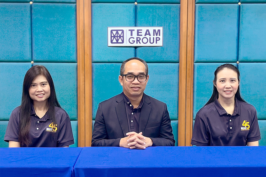 ดร.อภิชาติ สระมูล ประธานเจ้าหน้าที่บริหาร พร้อมด้วย นางเพ็ญพิไล พรชัยพานิช (คนซ้าย) ประธานเจ้าหน้าที่การเงิน และนางสาวนวลแพร ภัทรมัย (คนขวา) นักลงทุนสัมพันธ์ บริษัท ทีม คอนซัลติ้ง เอนจิเนียริ่ง แอนด์ แมเนจเมนท์ จำกัด (มหาชน) หรือ TEAMG นำเสนอข้อมูลในงานบริษัทจดทะเบียนพบนักลงทุน Opportunity Day ณ ห้องประชุมชั้น 2 อาคารทีม