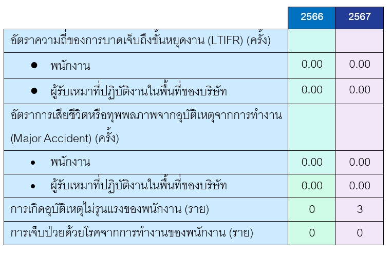 ผลการดำเนินการและเป้าหมายด้านความปลอดภัยและสุขอนามัยของพนักงาน