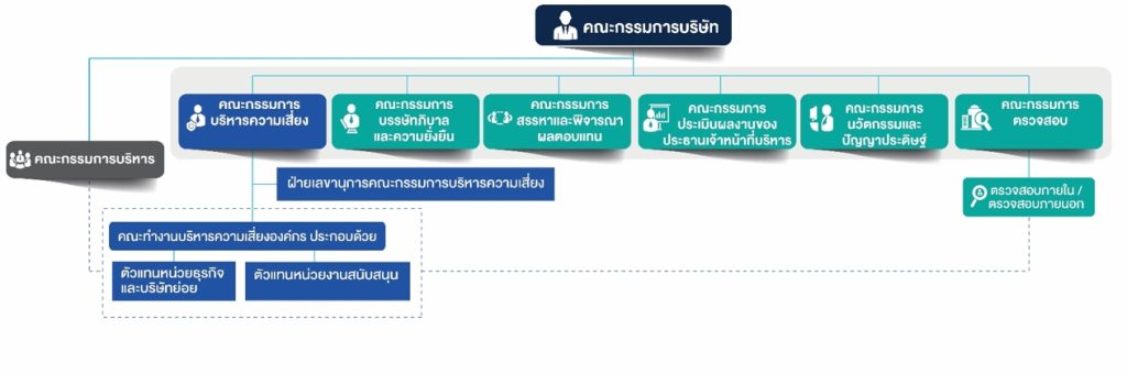 จากความมุ่งมั่นและตระหนักถึงความสำคัญของ นวัตกรรมและปัญญาประดิษฐ์ (AI) ในการขับเคลื่อนองค์กรสู่อนาคตที่ยั่งยืนและสามารถแข่งขันในยุคดิจิทัลได้อย่างมีประสิทธิภาพ ด้วยเหตุนี้ คณะกรรมการบริษัท จึงได้จัดตั้งคณะกรรมการนวัตกรรมและปัญญาประดิษฐ์ ขึ้นเพื่อกำกับดูแลและส่งเสริมให้การพัฒนานวัตกรรมเป็นส่วนหนึ่งของกลยุทธ์องค์กร ทั้งในด้านการดำเนินธุรกิจ เทคโนโลยี และความรับผิดชอบต่อสังคมและสิ่งแวดล้อม และมีบทบาทสำคัญในการกำหนดทิศทางนวัตกรรม ติดตามและสนับสนุนโครงการพัฒนานวัตกรรมที่สร้างมูลค่าเพิ่มให้กับบริษัท บริหารความเสี่ยงด้านเทคโนโลยี และส่งเสริมวัฒนธรรมแห่งความคิดสร้างสรรค์ภายในองค์กร นอกจากนี้ ยังสนับสนุนการนำ ปัญญาประดิษฐ์ (AI) มาใช้ในการเพิ่มประสิทธิภาพธุรกิจและสร้างคุณค่าให้แก่สังคม โดยมีหน่วยงานนวัตกรรมและปัญญาประดิษฐ์ ทำหน้าที่นำนโยบายไปสู่การปฏิบัติทั่วทั้งองค์กร