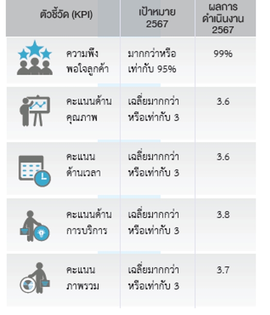 ในปี 2567 บริษัทได้เข้าประเมินผลความพึงพอใจของลูกค้า 144 โครงการ ผลการประเมินมีโครงการที่ผ่านเกณฑ์ 142 โครงการ คิดเป็นสัดส่วนร้อยละ 99 ของจำนวนโครงการที่เข้าประเมิน