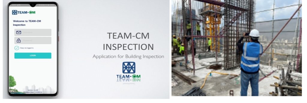 TEAM-CM inspection application เป็น smart application ที่บริษัทพัฒนาขึ้นสำหรับตรวจรับงานก่อสร้างอาคาร และคอนโดมีเนียมต่าง ๆ โดยไม่ต้องใช้กระดาษ (paperless) ใช้ได้ทั้งกระบวนการทำงาน เพื่อเพิ่มประสิทธิภาพของการตรวจสอบ และสร้างความแตกต่างในการให้บริการ
