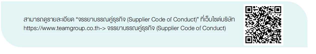 โดยบริษัทได้จัดทำจรรยาบรรณคู่ธุรกิจ (Supplier Code of Conduct) ขึ้นมาเพื่อเป็นคู่มือในการสื่อสารเกี่ยวกับแนวปฏิบัติขั้นพื้นฐาน โดยกำหนดแนวทางปฏิบัติร่วมกันระหว่างบริษัทและคู่ค้า อาทิ ดำเนินธุรกิจอย่างซื่อสัตย์สุจริต เป็นธรรมกับผู้มีส่วนได้เสียทุกฝ่าย เปิดเผยข้อมูลอย่างถูกต้องครบถ้วน รักษาความลับ และเคารพในทรัพย์สินทางปัญญาของผู้อื่น และดำเนินธุรกิจโดยคำนึงถึงผลกระทบต่อทรัพยากรธรรมชาติและสิ่งแวดล้อม เช่น การใช้ผลิตภัณฑ์ที่เป็นมิตรต่อสิ่งแวดล้อม (Green Products) เป็นต้น โดยได้เปิดเผยไว้บนเว็บไซต์ของบริษัท ภายใต้หัวข้อ “การกำกับดูแลกิจการ > นโยบายการกำกับดูแลกิจการ” เพื่อให้คู่ค้ารับทราบและให้ความร่วมมือในการดำเนินการ