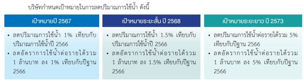 บริษัทกำหนดเป้าหมายในการลดปริมาณการใช้น้ำ ดังนี้