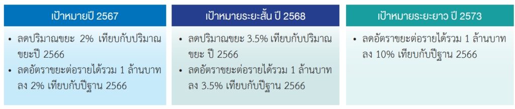 บริษัทกำหนดเป้าหมายในการลดปริมาณขยะในองค์กร ดังนี้