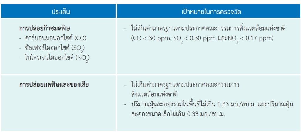 บริษัทกำหนดตั้งเป้าหมายด้านการปล่อยมลพิษในโครงการก่อสร้าง ดังนี้