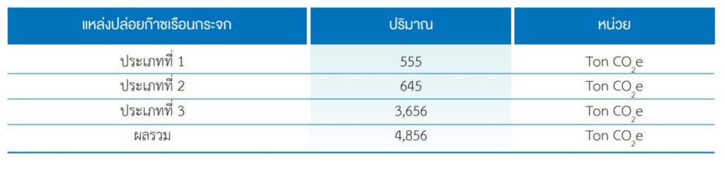 - ก๊าซเรือนกระจกทางอ้อมอื่น ๆ (Scope 3) เกิดจากซื้ออุปกรณ์ เครื่องมือเครื่องใช้ การใช้กระดาษ การใช้น้ำประปา และเดินทางทางอากาศของพนักงาน และปริมาณขยะในองค์กร